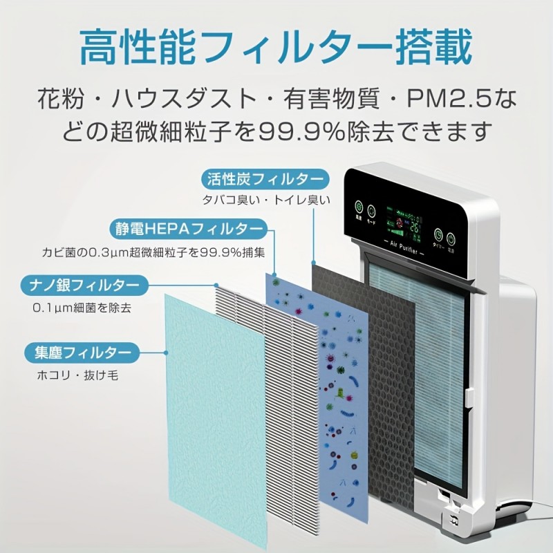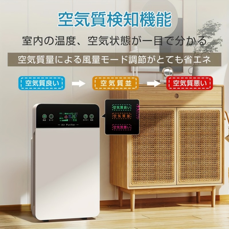 空気清浄機 花粉対策 小型 ウイルス対策 PM2.5 家庭用 空気清浄器 省エネ 可視化 35畳 小型 ほこり 卓上 静音 加湿なし コンパクト HEPAフィルター タッチパネル フィルター内蔵 脱臭機 3段階切替 ペット コンパクト